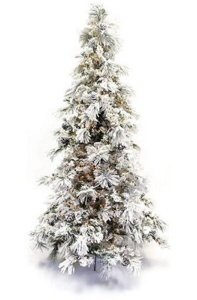 7.5′ Flocked Long-Needle Pine Tree with Pinecones and Warm White Lights