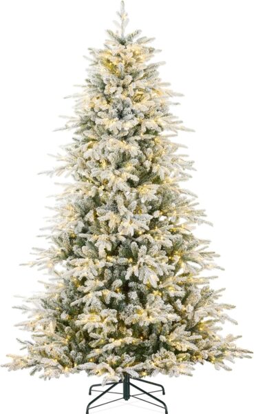 Best Choice 7.5′ Pre-lit Snow Flocked Hinged Christmas Tree with 550 warm white lights