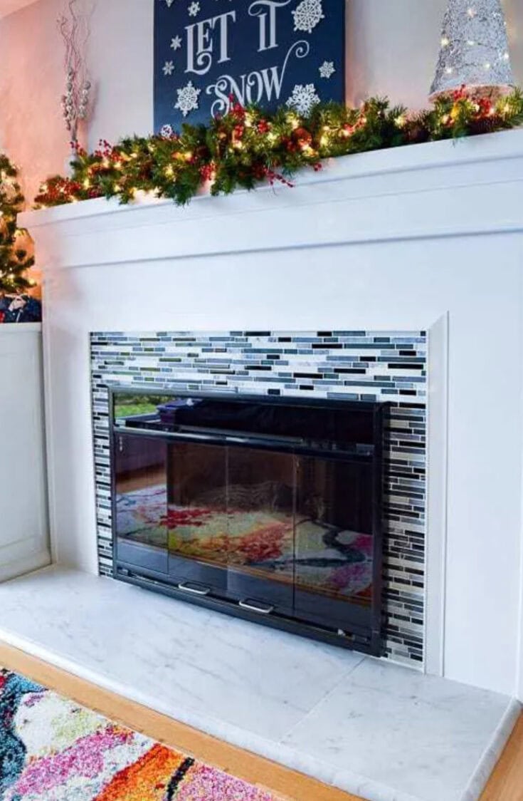 You can tile over a brick fireplace with this simple tutorial, even if the brick is painted.