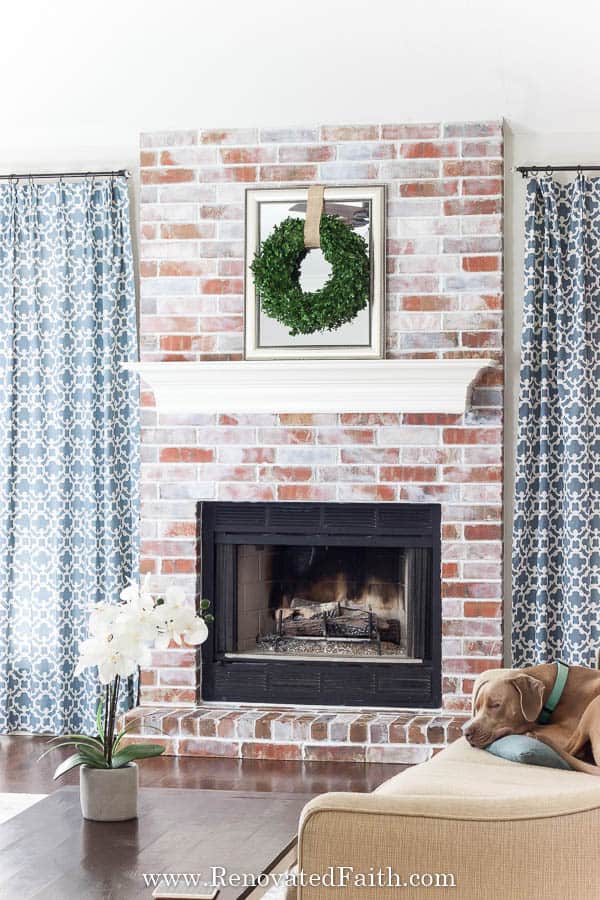 Learn how to make and apply whitewash paint to a brick fireplace. This easy and inexpensive DIY project can be completed in a few hours!