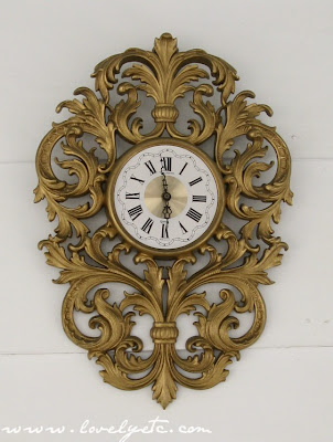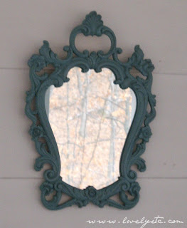 I have two great mirror transformations to share today. The first actually started out as a clock surrounded by swirls and flourishes. As soon as I saw it, I thought of the two clocks I repurposed into mirrors this summer.
