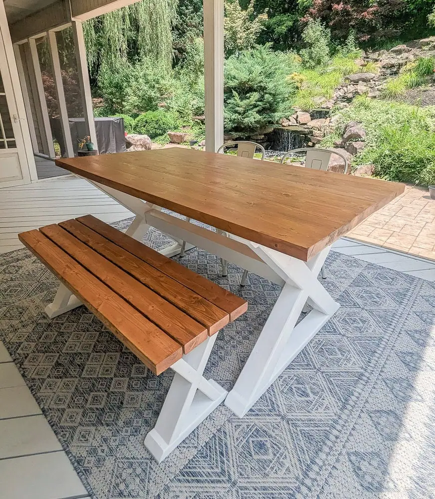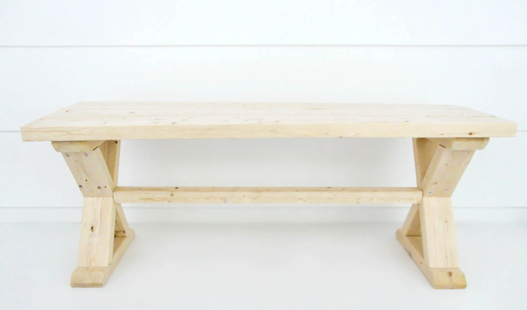 This classic DIY wood bench is made from inexpensive 2x4s and works beautifully both indoors and outdoors.